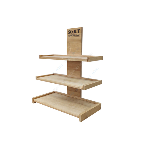 Productos de maquillaje multifuncionales personalizados, estante de exhibición de madera contrachapada, estantería para la venta, tienda minorista, estantes de exhibición de mesa