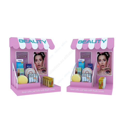 Tienda de cosméticos al por menor Accesorio Mostrador de maquillaje de pestañas Estantes de exhibición Productos Perfume de color rosa Vitrina cosmética Vitrina