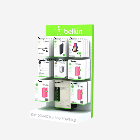 Estante de exhibición de piso POP Pegboard personalizado, gancho de cartón, soporte colgante para accesorios de teléfono celular
