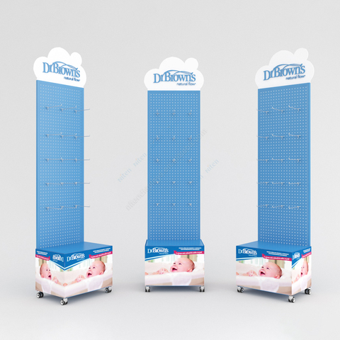 Pieghevole espositore da pavimento con gancio in metallo con pannello forato in polvere metallo ripiani per nail board