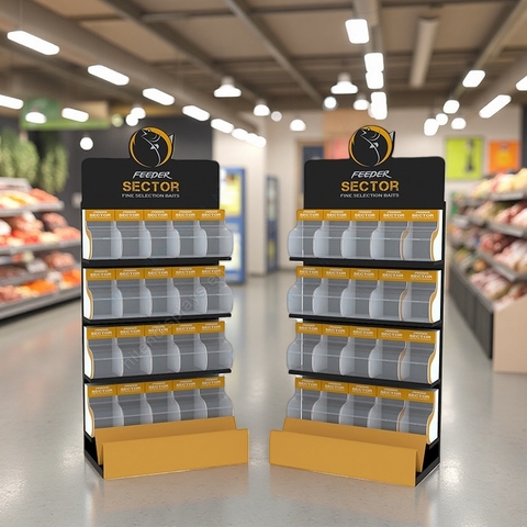 Doorzichtige Acryl Doos Metalen Vloerstandaard Met Verdelers Voor Graanzaad Visvoer Opslag Bak Display