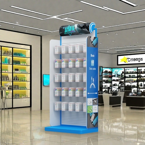 Multifunctionele Metalen Vloer Display Rekken Met Haken Pegboard Standaard Voor Mobiele Telefoon Accessoires